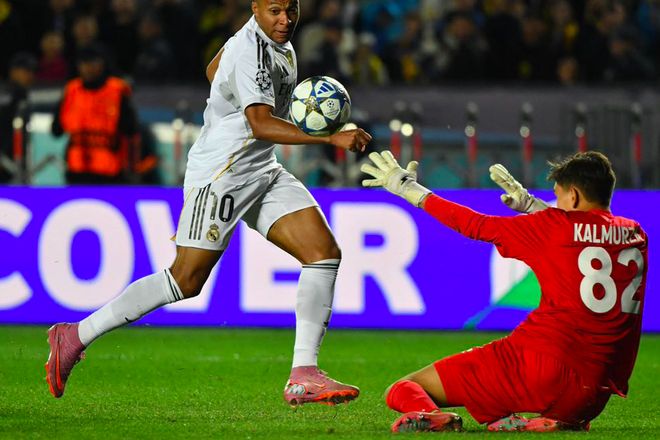 北京时间10月1日凌晨,新赛季的欧冠联赛正赛第2轮先赛一场,总身价14亿欧元的皇马做客哈萨克斯坦,挑战总身价只有1200万的阿拉木图凯拉特。【比赛焦点】尽管两队实力相差悬殊,阿隆索依旧没有怠慢,姆巴佩、维尼修斯、居莱尔、琼阿梅尼都首发登场,维尼修斯更是戴上了队长袖标。第23分钟,姆巴佩打进了马斯坦托诺制造的点球。凭借这一进球,姆巴佩创造纪录,成为皇马队史首位包揽赛季欧冠前3球的球员。领先后的皇马还有机会,无论是马斯坦托诺还是姆巴佩,几乎相同的兜射距离进球都不远。半场结束,皇马1-0暂时领先。第52分钟、第73分钟,姆巴佩再进两球。第83分钟,卡马文加锦上添花。补时阶段,迪亚斯也有进球斩获。最终,凭借姆巴佩的完美发挥,皇马客场5-0完胜阿拉木图凯拉特,迎来欧冠2连胜。值得注意的是,新赛季西甲+欧冠一共9场比赛,姆巴佩打进13球。【精彩瞬间】第14分钟,皇马打出快速反击,维尼修斯获得半单刀的机会,凯拉特的门将及时出击,维尼修斯的搓射打偏了。第23分钟,凯拉特两名后卫头顶脚踢,连续犯下大错,马斯坦托诺突入禁区,门将直接将他放倒,裁判毫不犹豫吹罚点球。第25分钟,姆巴佩操刀主罚,稳稳命中。第35分钟,马斯坦托诺禁区内接球后稍作调整,左脚兜射远角,皮球被后卫碰了一下,稍稍偏出。第44分钟,姆巴佩禁区内十分巧妙穿裆过人,之后的射门差之毫厘。第52分钟,库尔图瓦没有目的大脚开球,姆巴佩斜向前插,超过后卫,单刀破门。第58分钟,姆巴佩的停球和传球,维尼修斯的喂饼都足够完美,姆巴佩却将球打偏了。第67分钟,格罗米科突入禁区,塞巴略斯回防,格罗米科倒地,裁判判罚点球。VAR介入,格罗米科有一个主动碰瓷的动作,点球取消。第73分钟,刚刚替补登场的罗德里戈一系列眼花缭乱的过人和传球,居莱尔触球,姆巴佩上演帽子戏法。第83分钟,罗德里戈再次上演过人好戏,之后的传中帮助卡马文加头槌破门。【出场阵容】皇马首发:1-库尔图瓦、17-劳尔·阿森西奥、24-赫伊森、4-阿拉巴、20-弗兰·加西亚、14-琼阿梅尼、19-塞巴略斯、15-居勒尔、30-马斯坦托诺、7-维尼修斯、10-姆巴佩。皇马替补:13-卢宁、11-罗德里戈、29-哈维·纳瓦罗、16-贡萨洛、5-贝林厄姆、18-卡雷拉斯、6-卡马文加、21-卜拉辛·迪亚斯、8-巴尔韦德、35-大卫·希门尼斯、9-恩德里克。凯拉特首发:82-卡尔穆尔扎、20-塔帕洛夫、14-马丁诺维奇、80-索罗金、3-路易斯-马塔、24-姆林斯基、4-卡萨布拉特、15-阿拉德、55-格罗米科、7-若日尼奥、9-萨特帕耶夫。凯拉特替补:31-迪亚斯-雷莫夫、98-阿尔达谢夫、5-库尔金、6-阿迪莱特·萨迪别科夫、10-扎里亚、17-巴伊别克、25-亚历山大·什罗博科夫、26-埃迪米尔森、33-斯塔诺耶夫、99-里卡迪尼奥。