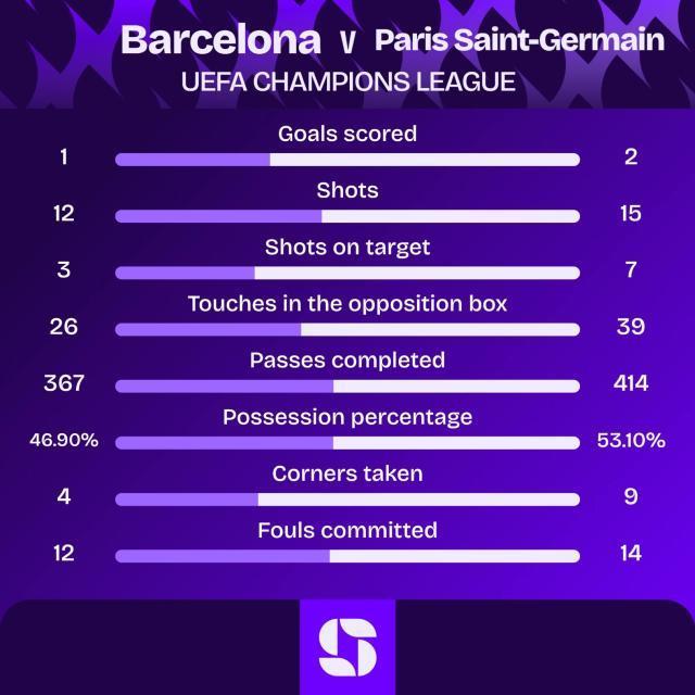 体坛周报全媒体原创巴塞罗那1比2巴黎圣日耳曼19'费兰·托雷斯/38'马尤卢,90'贡萨洛·拉莫斯欧冠联赛阶段第二轮迎来一场重磅对决,巴萨主场迎战卫冕冠军巴黎圣日耳曼,两队都一定程度上受到伤病的困扰。上半场费兰·托雷斯打破僵局,马尤卢扳平比分。下半场阿什拉夫·哈基米完成关键封堵,替补出场的贡萨洛·拉莫斯在常规时间最后时刻完成绝杀,巴黎圣日耳曼2比1逆转战胜巴萨。第12分钟,努诺·门德斯开出角球,扎巴尔尼头球攻门高出横梁。第14分钟,亚马尔送出精彩的外脚背直传,费兰·托雷斯过掉门将之后打空门被扎巴尔尼极限解围。第19分钟,拉什福德左路送出传中,费兰·托雷斯倒地铲射破门。巴萨1比0打破僵局。第26分钟,奥尔莫禁区外远射经过折射后偏出底线。第38分钟,努诺· 门德斯助攻,库巴西铲球没能拦截,马尤卢单刀轻松破门。巴黎1比1扳平比分。第42分钟,巴尔科拉面对防守闪开空当之后左脚射门高出横梁。第53分钟,巴尔科拉在右路闪开角度劲射被什琴斯尼扑出。第64分钟,费兰·托雷斯传中,扎巴尔尼解围后奥尔莫空位的推射被回防到位的阿什拉夫·哈基米挡出。第83分钟,李刚仁盘带进入禁区后左脚兜射远角击中立柱弹出。第90分钟,阿什拉夫·哈基米传中,贡萨洛·拉莫斯单刀推射将球打进。巴黎2比1逆转绝杀。巴萨首发:什琴斯尼/孔德,库巴西,埃里克·加西亚(85'克里斯滕森),赫拉德·马丁(72'巴尔德)/弗伦基·德容,佩德里(79'贝尔纳尔)/亚马尔,奥尔莫(72'卡萨多),拉什福德(72'莱万多夫斯基)/费兰·托雷斯巴黎首发:舍瓦利耶/阿什拉夫·哈基米,帕乔,扎巴尔尼,努诺·门德斯/维蒂尼亚,扎伊尔-埃梅里,法维安·鲁伊斯(73'贡萨洛·拉莫斯)/巴尔科拉(80'恩詹杜),马尤卢(80'李刚仁),易布拉欣·姆巴耶(65'卢卡斯·埃尔南德斯)【数说】24-本场比赛是亚马尔第24次欧冠出场,这让他超越23场的扎伊尔-埃梅里,成为19岁之前欧冠出场次数最多的球员。45-巴萨已经各项赛事连续45场比赛取得进球,为队史最长连续进球记录。4-连续三场比赛送出助攻的拉什福德本赛季在各项赛事中送出4次助攻,是五大联赛本赛季目前为止助攻次数最多的英格兰球员。8-巴黎本赛季15次先丢球的比赛中有8场完成了逆转取胜,创下队史在一个自然年中逆转次数最多的纪录。3-巴黎圣日耳曼已经连续三次客场击败巴萨,是历史上第一支欧战客战巴萨三连胜的球队,仅次于4次的拜仁,是客胜巴萨次数第二多的球队。2-弗利克执教生涯第二次在欧冠的小组赛或联赛阶段吞下失利,也是他执教生涯第二次输给巴黎圣日耳曼。文/刘璃