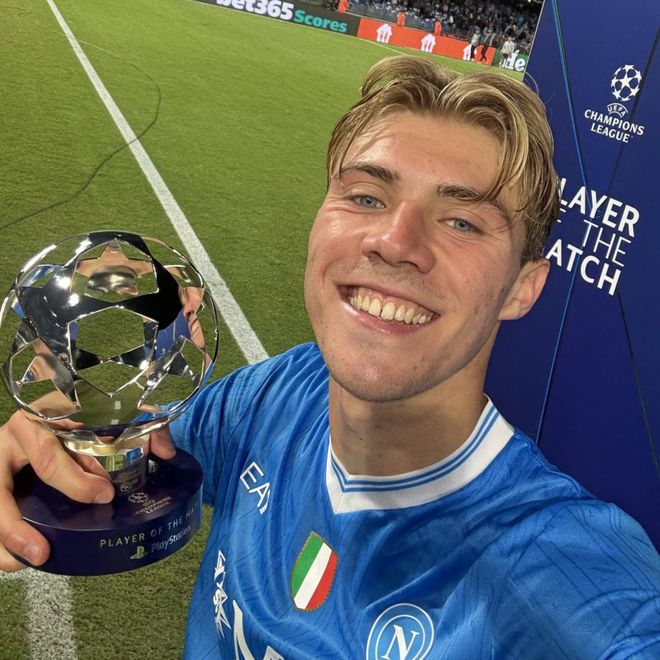 在北京时间10月2日结束的欧冠联赛阶段第2轮一场焦点战中,意甲冠军那不勒斯2-1力挫葡萄牙体育,迎来欧冠首胜。而本场比赛,租借加盟的霍伊伦梅开二度,成为那不勒斯首胜的头号功臣。第36分钟,德布劳内奔袭突破后送助攻,霍伊伦面对门将冷静单刀射穿小门得手,帮助那不勒斯打破僵局。在葡萄牙体育扳平比分,眼看那不勒斯即将开局2轮不胜后,霍伊伦再次拯救球队。第79分钟,德布劳内左路传中,霍伊伦抢在门将身前甩头攻门,帮助那不勒斯完成绝杀。这是霍伊伦时隔2年,再次在欧冠单场梅开二度。赛后,头顶脚踢闪耀全场的霍伊伦,毫无悬念当选本场比赛官方最佳球员。作为昔日的对手和现在的好搭档,德布劳内也对霍伊伦毫不吝啬赞美之词:“我认为拉斯穆斯(霍伊伦)很有潜力,我认为他和哈兰德在球员类型上非常相似。他们都是左脚球员,喜欢进攻空当。对他来说,那是一个美好的夜晚,他会帮助我们进更多球。加盟那不勒斯以来,霍伊伦5场比赛已经打进了3球,相当于在曼联的最后35场比赛的进球数。可以说,这位被诟病为曼联队史最水9号的中锋,离队后在那不勒斯真的复活了。霍伊伦也再次证明了,曼联队内确实存在“鱼缸效应”。