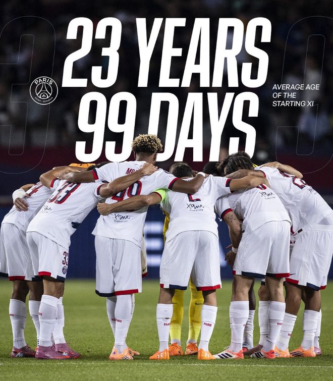 巴黎对阵巴萨阵容平均年龄23岁99天,历史卫冕冠军第二年轻