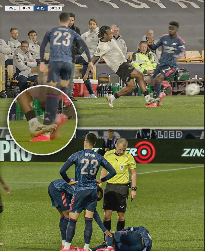 萨卡在下半场被踢到了脚踝,并且在第62分钟被道曼替换下场。看着挺危险,但对手甚至没有拿到黄牌……萨卡又踢了一会才下场,好在阿尔特塔赛后确认萨卡没有受伤。马杜埃凯缺阵2个月左右,萨卡千万不能受伤了……