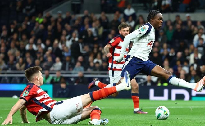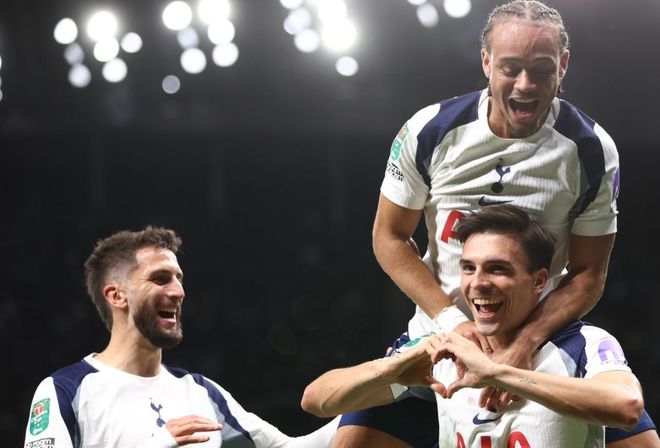 英联杯第3轮的一场比赛展开争夺,9亿欧身价的热刺在主场迎战唐卡斯特。热刺本赛季联赛战绩相当不错,5场联赛3胜1平1负,只输了一场与伯恩茅斯的比赛。而在欧冠赛场,热刺也比较顺利,击败了比利亚雷亚尔。这次来到英联杯赛场,热刺面对的是英甲球队唐卡斯特。结果没有任何意外,热刺轻松淘汰唐卡斯特。本场比赛热刺排出了433进攻阵型。布伦南-约翰逊、特尔和奥多贝尔的进攻组合联袂出击。格雷、本坦库尔和哈维-西蒙斯组成3中场。波罗、帕利尼亚、凯文-丹索和斯彭斯4后卫首发出战。金斯基担任首发门将。里沙立松和贝里瓦尔坐在替补席待命。比赛刚开始不久,特尔就获得非常好的机会,只可惜他的近距离射门踢高了。第14分钟,热刺就进球了!依靠角球机会,帕利尼亚在禁区内完成一脚非常漂亮的倒钩进球。3分钟后,麦格拉思在门前不小心把球打进自家球门。这粒乌龙球让唐卡斯特陷入了绝境。第40分钟,欧文-贝利在禁区内凌空抽射,门将反应极快,做出极限扑救。半场结束,热刺2-0领先。下半场易边再战。特尔再次浪费机会,他在禁区中路的射门竟然踢疵了。随后,米德尔顿任意球直接射门踢偏了。第90分钟,贝里瓦尔进球,但因为越位在先,进球无效。补时阶段,布伦南-约翰逊获得单刀机会,他冷静破门,终结比赛。最终的比分定格为3-0,热刺大胜唐卡斯特。本场比赛热刺控球率55%,18次射门,5次射正,进了3球。而唐卡斯特10次射门都没有进球。帕利尼亚是全场最佳,他打进1球,6次解围,2次抢断,在攻防两端的表现无可挑剔。热刺杀入1/8决赛,对阵出炉,将对决克星纽卡斯尔联。热刺过去3次与纽卡斯尔联交手都输。显然,热刺接下来要想跨过纽卡斯尔联这一关非常困难。