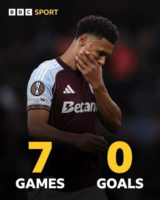 7场0球0助攻!沃特金斯状态断崖式下滑曼联夏窗差点买他