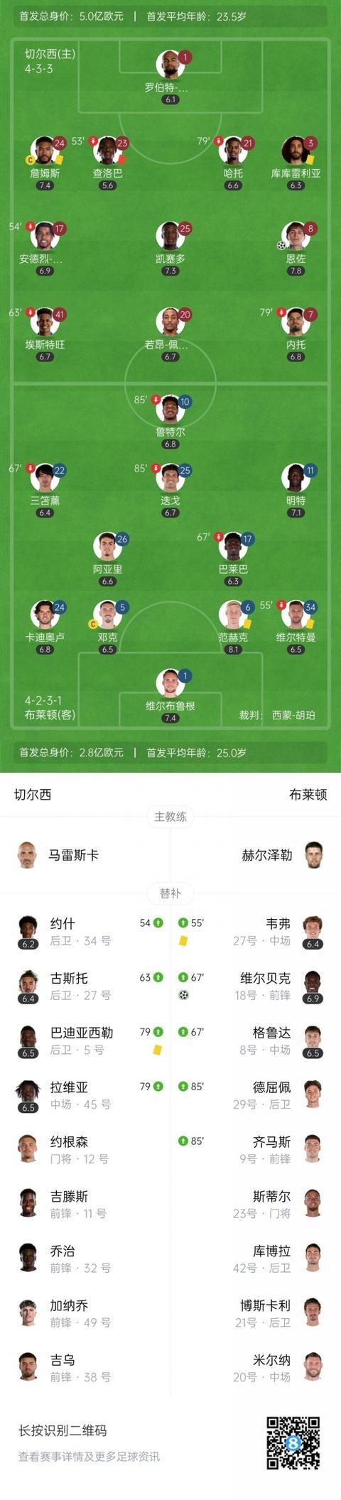 英超第5轮:切尔西1-2曼联。0-0时,桑切斯直红,马雷斯卡换下2前锋,场上5后卫+3中场+1前锋,前腰帕尔默21分钟也换下。切尔西没守住,1-2告负。英超第6轮:切尔西1-3布莱顿。1-0领先时,查洛巴直红,马雷斯卡接连换下埃斯特旺和内托,场上5后卫+3中场+1前锋,随后被布莱顿连入3球逆转。切尔西没守住,1-3告负。独家看英超就在咪咕