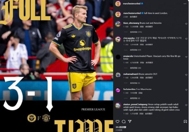1-3,曼联耻辱地输给了布伦特福德,阿莫林黯然神伤,他不知道自己该怎么办了。6轮仅拿到7分,红魔追平历史最差纪录。赛后,曼联球迷纷纷在官媒评论区发泄怒火。最近这2个赛季,曼联几乎成为了耻辱的代名词。为了让球队走出困境,曼联高层解雇了滕哈赫,并从葡体挖来了阿莫林,希望他能复制在葡超的辉煌。哪曾想,阿莫林不但没让曼联变好,反而越来越差。上任以来,阿莫林在英超的胜率只有27%,场均仅拿到1.03分,远低于滕哈赫。每次输球后,阿莫林只是强调自己有办法让球队变好,但从来都说不出具体的方案,这不得不让人怀疑他的能力。面对外界的质疑和批评,阿莫林非常强势,始终表示自己一点都不担心下课,并称高层是支持他的。看样子,阿莫林是肯定不会辞职的,就算走人他也要带着大把的违约金。曼联球迷对阿莫林已经绝望,他们希望高层能理解解雇阿莫林。在曼联1-3输球后,其官媒评论区被球迷冲爆了:“就地解散吧。实在是看不下去了。”、“B费和阿莫林都得滚蛋。”、“阿莫林立刻卷铺盖走人。”、“”这批球员毫无斗志!、“很遗憾,我们根本踢不了对手是11个人队伍。”未来5轮,曼联的赛程依旧艰难。10月4日,曼联对阵桑德兰,黑猫目前高居英超第4;10月19日,曼联要客场挑战利物浦。随后,曼联还要对阵布莱顿、诺丁汉森林以及热刺。