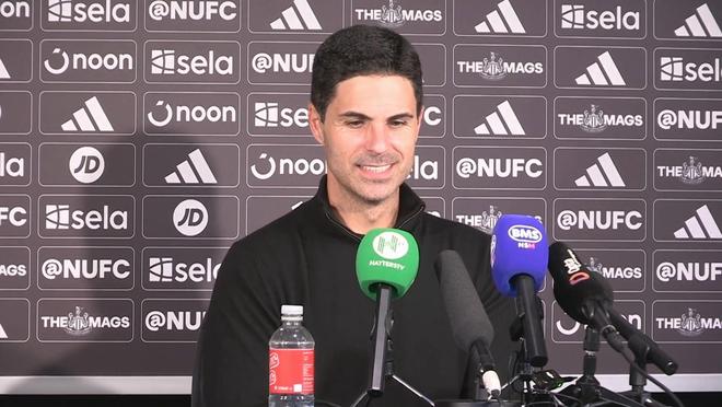 英超在这个关键的一周给我们带来的一个契机,这赛季刚开始我们就经历了很多艰难的客场,现在正是展示我们是谁、我们想成为什么样的球队、我们的雄心以及我们的比赛风格的时候,我认为球队今天以一种非凡的方式做到了这一点。米克尔,你对哲凯赖什那次判罚以及你的球员们对此的反应有什么看法?因为感觉过去遇到这种情况的时候他们可能会陷入混乱,但特别是在下半场,他们似乎能够放下这件事,重新投入比赛……是的,我当时现场看了比赛的情况,之后又在屏幕上看了回放,在我看来那是个点球。这赛季我们再次得到了明确的指示,除非是明显而且重大的错误,否则裁判都不会介入,但那次并非如此,这就是我的观点。我们还是找到了赢得比赛的方法,球队在情绪上依然非常、非常、非常冷静和沉着,这可能也是我们从几年前的经历当中吸取的教训。感觉在争冠的道路上,这个周末意义重大,分差缩小到了两分,这样的结果对你的信心有什么影响?这增强了球队的信心和信念,让我们相信自己能应对各种类型的比赛,并且球队依然能够表现出色,令人信服地赢得比赛。对我来说,这里是最难攻克的场地之一。我要再次称赞纽卡斯尔联,他们的比赛方式、竞争精神,都让人意识到了在这里比赛有多难。但今天球队真的把比赛提升到了一个新的高度,看到这一点我非常自豪。我知道在最近的比赛里这对你来说有点似曾相识,但是替补球员又一次起到了巨大的作用,不是吗?是的,我们当然知道这一点,并且出于不同的原因做了一些调整和换人。那些上场的球员,他们上场的时候都全神贯注,他们的职责就是为球队赢得比赛,所有人都表现得极其出色。马丁(厄德高)上场后,从一开始就展现出了威胁。萨利巴上一场踢了45分钟,我觉得他表现得非常出色。同样,马丁在长时间没有上场之后上场,传出了两脚助攻进球的传球。米克尔-梅里诺上场后在禁区内极具威胁,创造了制胜时刻。所以说,所有替补球员都表现得很棒。进球后加布里埃尔和沃尔特马德有一次冲突,你看到了吗?抱歉,我没看到。考虑到利物浦昨天丢分了,今天你肯定会感到更有压力去争取拿到想要的结果,那么在利物浦丢分之后,这场胜利有多重要呢?好吧,是的,在赛季当中会有这样的时刻。显然,以我们目前的比赛风格以及艰难的赛程安排,今天我们有机会缩小分差,而且是在一个对我们来说近期经历比较艰难的球场做到这一点,我认为这显示出了球队有多么渴望胜利。上个星期你受到了一些批评,但今天你来到这里,真正地在比赛当中压制了纽卡斯尔联,你觉得你和你的球员们这周让那些批评者闭嘴了,并且充分展示了……我不知道。我觉得在对阵曼城和纽卡斯尔联这两个最难对付的对手的时候,球队表现得非常出色,这就是我的明确看法。【上咪咕独家看
