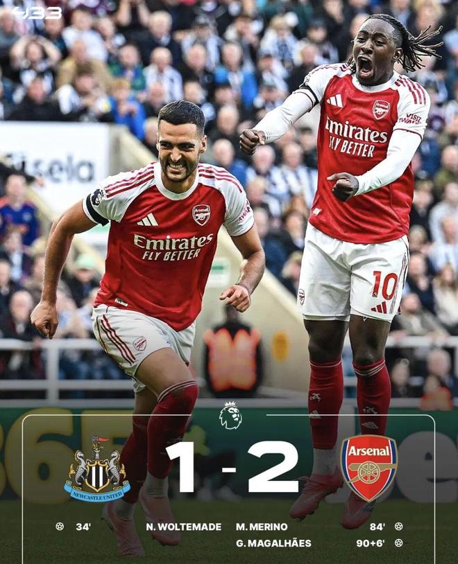 无绝杀,不英超!今天凌晨结束的一场英超焦点战,枪手在客场2-1逆转击败纽卡,抢下关键的3分!由于本轮利物浦不敌水晶宫,所以这场比赛对于枪手来说也是一个宝贵的追分机会。不过,本场比赛阿森纳客场作战并不轻松,甚至在上半场率先丢球。第34分钟,托纳利传中,沃尔特马德头球破门,纽卡1-0领先阿森纳。这名身高一米98的高中锋,来到纽卡之后打进的2球,都是头球,把自身的优势发挥到淋漓尽致。落后的枪手一直到第84分钟才扳平比分,替补出战的梅里诺,同样接到队友的传中,头球破门!然后到伤停补时阶段第96分钟,获得角球机会的阿森纳,凭借中卫加布里埃尔的头球破门,在客场实现绝杀!本场比赛,争议的地方也是让球迷讨论最激烈的话题,上半场第17分钟,约克雷斯突入禁区与波普接触后倒地造点,主裁判第一时间判罚了点球。但是在VAR介入之后,观看回放的主裁判最终选择取消点球,这个判罚也是充满了争议。赛后,英超官方给出了解释,当值主裁判在经过回看之后确认:“纽卡斯尔门将先踢到球,没有犯规。最终判罚是坠球。”所以,这一下波普究竟有没有先碰到球呢?另外,下半场VAR也介入了一次疑似禁区手球的犯规。阿森纳后卫加布里埃尔有一次禁区内的疑似手球,不过裁判组在观看了回放之后并未判罚点球。英超官方在此后也给出了解释:“裁判判定不判罚点球的决定经过了视频助理裁判的核查并得到确认,认定皮球是先碰到加布里埃尔的小腿后弹到了他的手臂上。”领先15球!角球之王!凭借在最后时刻角球机会破门,枪手在客场实现绝杀。本场比赛,阿森纳2次破门得分机会均来自角球,第一球同样是战术角球的机会破门。赛后,据Opta的统计,阿森纳自23-24赛季以来,在英超通过角球得分已经打进36球!同期这一数据高居所有俱乐部的第一位,比排名并列第二的切尔西和热刺(21球)多打进了15球。角球之王阿森纳,真的名不虚传!AC米兰 2-1 那不勒斯意甲本轮一场焦点战,米兰在主场迎战那不勒斯。开场仅3分钟,普利西奇精彩助攻,萨勒马科尔斯闪击破门!随后普利西奇在第31分钟再进一球,米兰半场结束2球领先。不过,下半场米兰遭遇打击,埃斯图皮尼安吃到红点套餐,德布劳内点球破门扳回一球,但是多打一人的那不勒斯未能追平比分,最终客场1-2落败。主场获胜的AC米兰,成功登顶意甲积分榜榜首。大腿!7场6球2助攻AC米兰在主场2-1击败那不勒斯,传射建功的普利西奇绝对是头号功臣。赛后据统计,本赛季的普利西奇,在米兰出战7场比赛贡献6球2助攻。值得一提的是,普利西奇目前身体仍然没有达到最佳状态,他在本赛季的米兰出场时间并不算多,7场比赛的出场时间,加起来只有345分钟。但是在这7场比赛中,普利西奇贡献了6球2助攻,带领米兰登顶积分榜榜首!