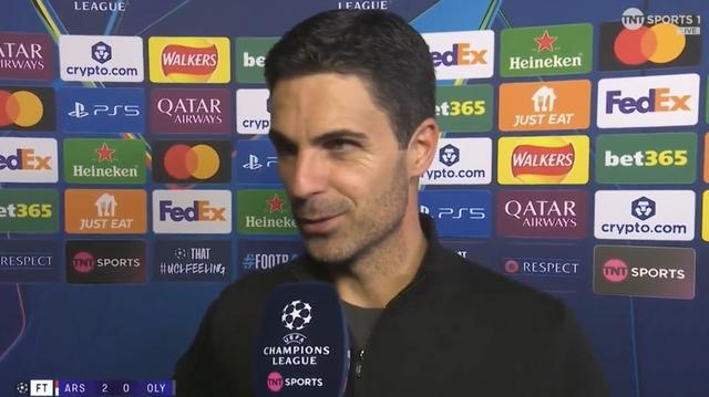 欧冠联赛阶段第二轮,阿森纳主场2-0击败奥林匹亚科斯,赛后,枪手主帅阿尔特塔接受了TNT体育的采访,他称赞了厄德高和全队的表现,表示很高兴取得胜利并零封对手。米克尔,祝贺你们,赢下了这场比赛。你对此怎么看?非常高兴,显然能赢球并且零封对手,正如我们赛前预料的,这是一个非常强硬的对手。我认为我们开局踢得非常非常好,进了一球,还创造了一些绝佳机会。在欧冠这种级别,如果你没有把握住机会,之后就会很难受。比赛里有一段时间我们有点儿松散,需要戴维-拉亚的一次关键扑救来保持零封。总体来说,在三天前刚踢完一场对阵纽卡斯尔的比赛后,还能踢出这样的表现,球员们值得称赞。关于把握机会这一点,这是你从这场比赛中需要重新评估并加以改进的吗?你刚才提到了,要抓住你创造出的机会,尤其是在这项赛事的后期阶段?是的,因为我们知道在欧冠一切都取决于禁区两端。对手不需要太多机会,三四次到前场就能制造极大威胁。所以当你获得那些好机会时,必须把球打进。不然就像最后10分钟那样,我们必须拼尽全力去抵抗并控制局面,最终才能赢得胜利。幸运的是,你们最近14场主场比赛有11场零封。这算是一种进步吧?听起来应该让你很高兴。这真的很难做到,所以要称赞球员们。我们在这项赛事里展现出的稳定性,对手都非常强大。而我们周六还要再接再厉。厄德高今晚看起来像是在执行任务一样,几乎恢复到了最佳状态。你同意吗?是的,他表现非常出色。我觉得他以一种对我们来说非常重要的方式影响了比赛,因为他不断向前推进,带球突破,送出直塞,给队友创造了大机会。他自己也应该把握住那个巨大空档的机会进一球。所以,能让他回到这种状态真的太好了。我们都知道你们阵容深度的说法,但你是否觉得球员们实际上是在从中受益?他们都在挺身而出?是的。他们知道,也都清楚自己有机会出场。也许我会进行六处调整,我想让所有人都成为其中重要的一部分。替补上来的球员帮助球队在缺少节奏、需要重新提振时提供支持。比如赖斯上来,埃泽、萨卡、莫斯克拉、还有廷贝尔,每个人都给球队带来了新的层面。这很棒。加布里埃尔没问题吧?他下场了。是的。他有点小问题,我想是上半场被踢了一下,所以我们决定把他换下。我知道你可能还没顾得上去想,但周末对西汉姆联,那将是你执教阿森纳的第300场比赛。在今天的足球世界里,这本身就是一项成就。我都不知道。这对俱乐部来说已经是很多场比赛了。是的,我感到非常荣幸,也对所有让这一切成为可能、让我在这里待这么久的人心怀感激。【上咪咕独家看英超